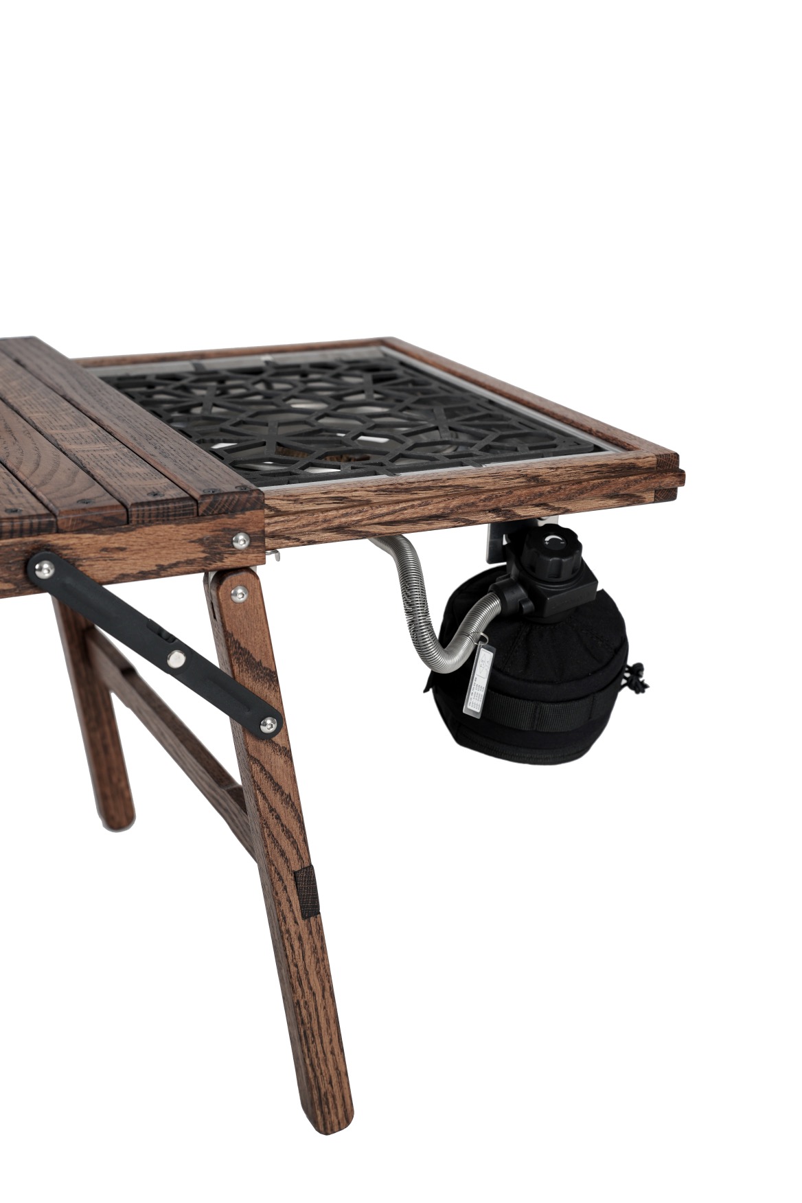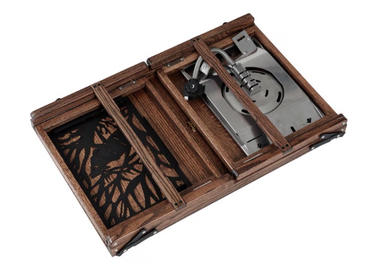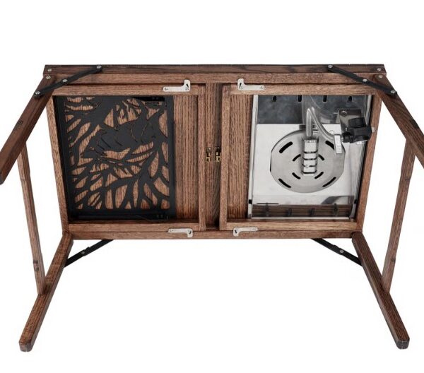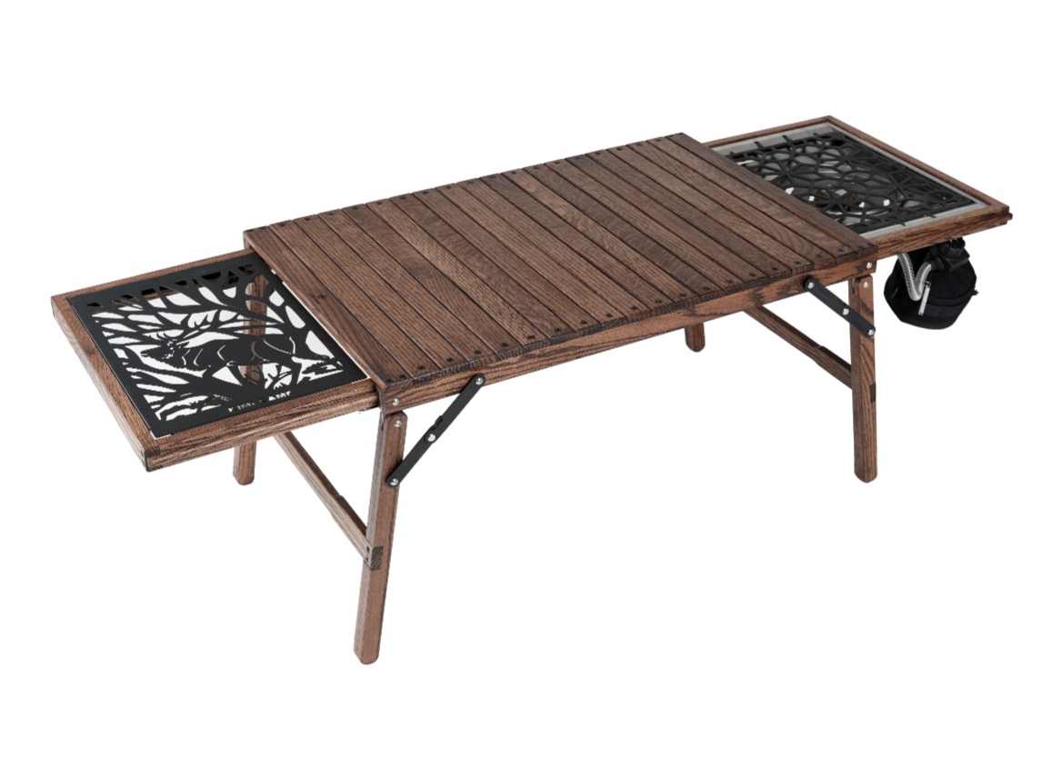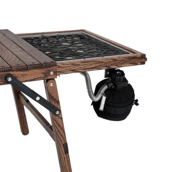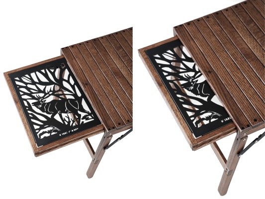 Iron plate and removable wooden top are not included.